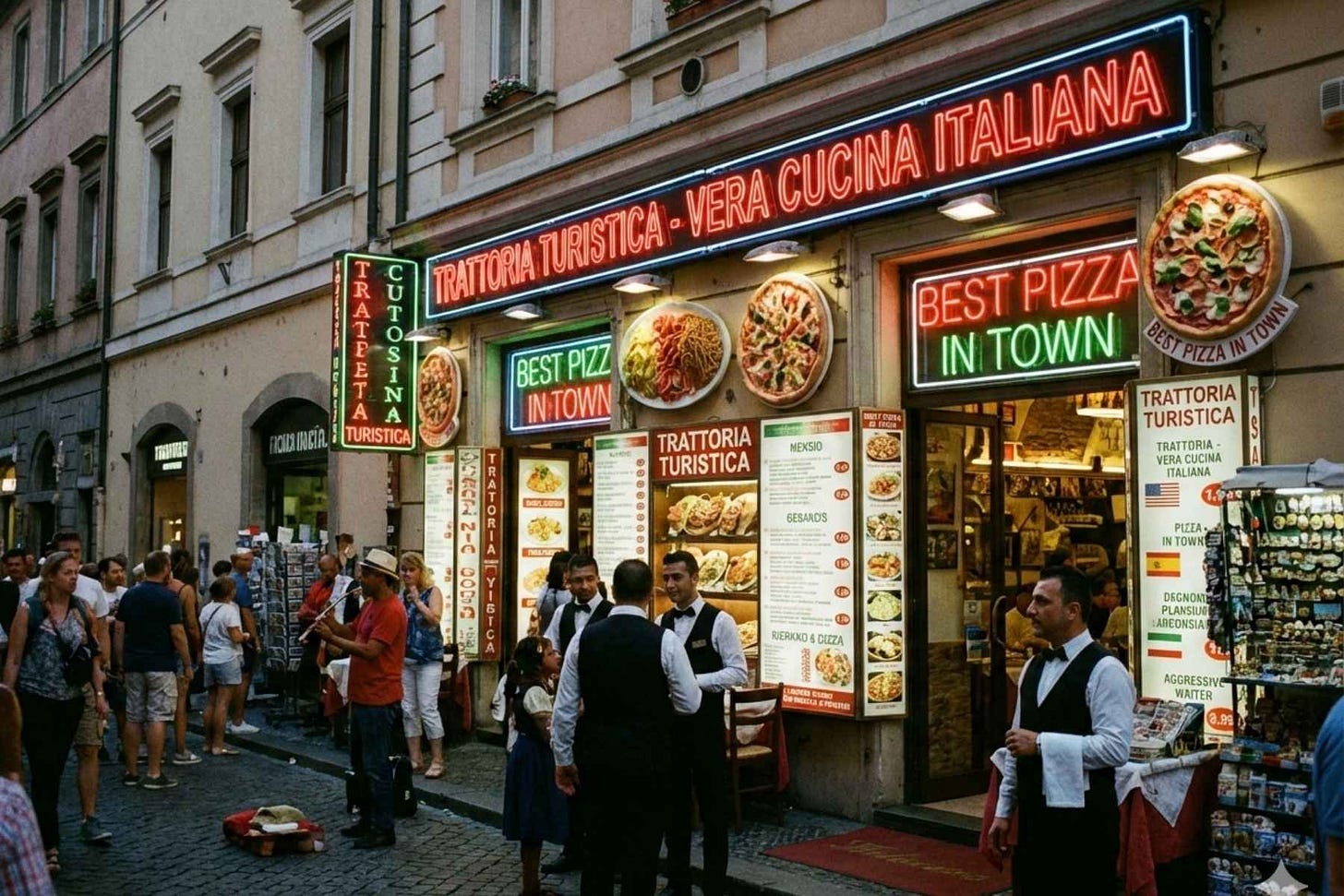 Doar că, în fața ta se aliniază terase cu meniuri lucioase, chelneri entuziaști și mirosuri suspecte de ulei încins. Ce îți spune instinctul? Aici intervine superputerea ta: cele zece secunde de instinct turistic. În zece secunde poți salva o zi, un stomac și o parte sănătoasă a bugetului.